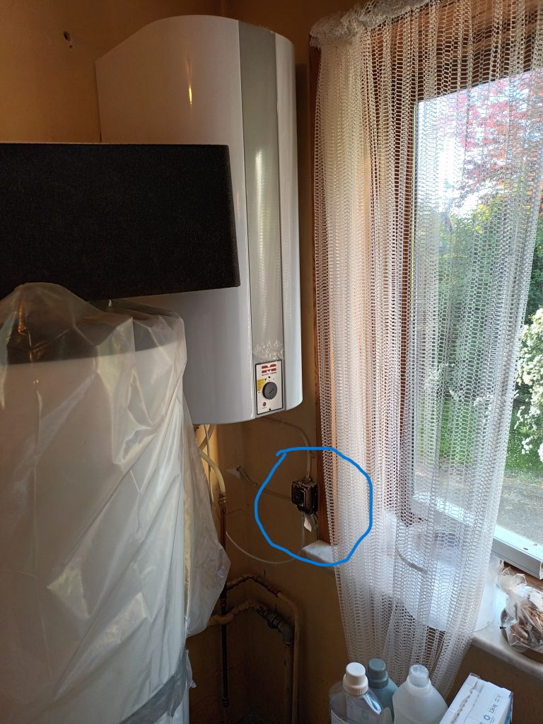 Den fine gammeldags kontakt. Ned = Tændt. Op = Slukket.